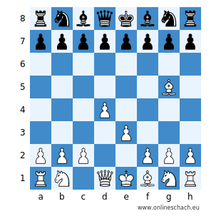 rnbqkbnr/pppppppp/8/6B1/3P4/4P3/PPP2PPP/RN1QKBNR w KQkq - 0 1