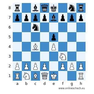r1bqk1nr/ppppbppp/2n5/4p3/2B1P3/5N2/PPPP1PPP/RNBQK2R w KQkq - 0 1