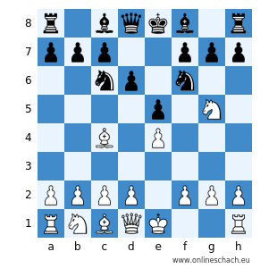 r1bqkb1r/ppp2ppp/2np1n2/4p1N1/2B1P3/8/PPPP1PPP/RNBQK2R w KQkq - 0 1