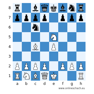 r1bqkbnr/pppp1ppp/2n5/4N3/2B1P3/8/PPPP1PPP/RNBQK2R w KQkq - 0 1